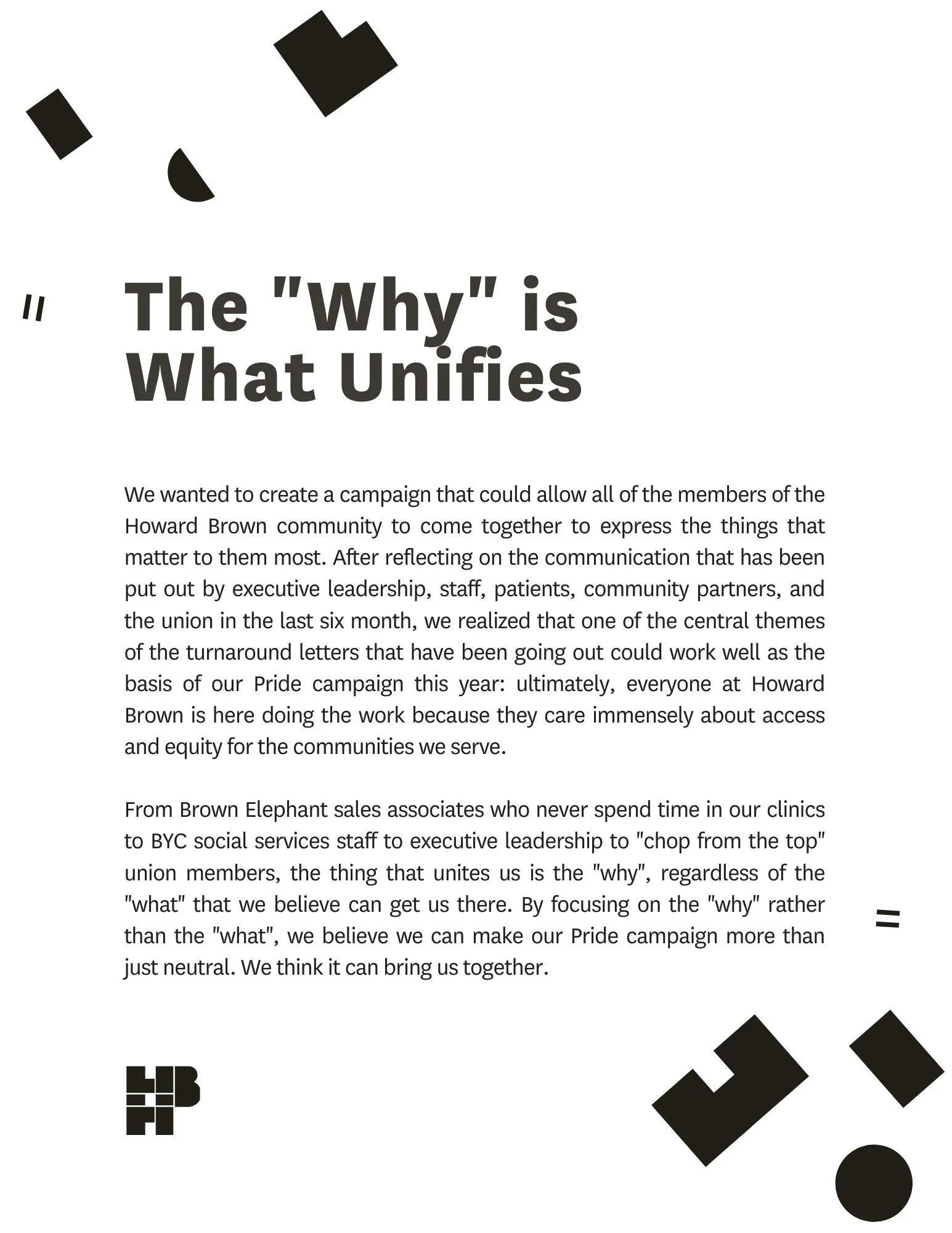 June 2023, Howard Brown Health was faced with a massive task; design a Pride campaign to heal a divided organization and reaffirm it’s commitment to its community. Together with my team, I designed and pitched a campaign that we thought would do just that. We wanted to bring Pride back to it’s roots as a protest. We offered each employee the chance to tell the world what they were marching for this year.
